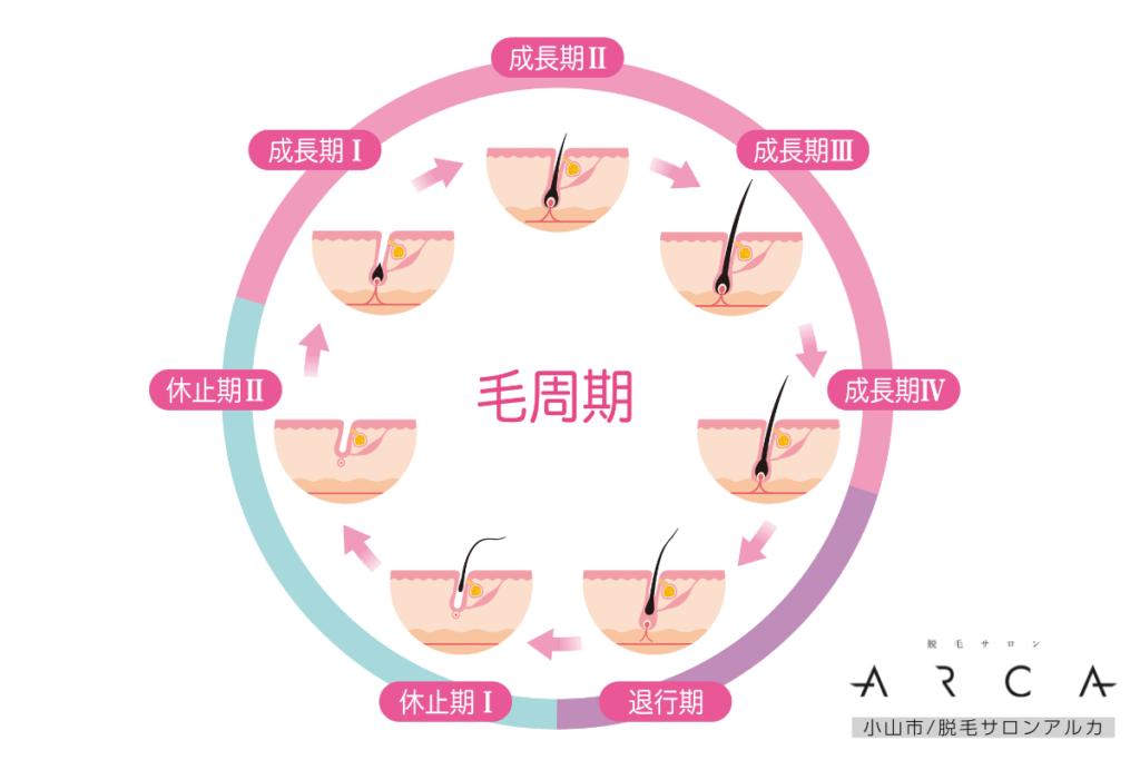毛は「成長期」「退行期」「休止期」というサイクルで生え変わっています。