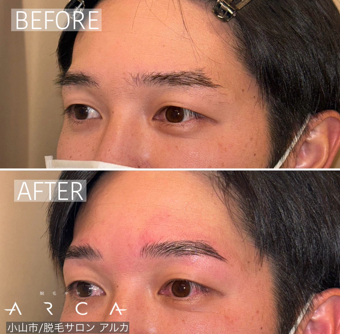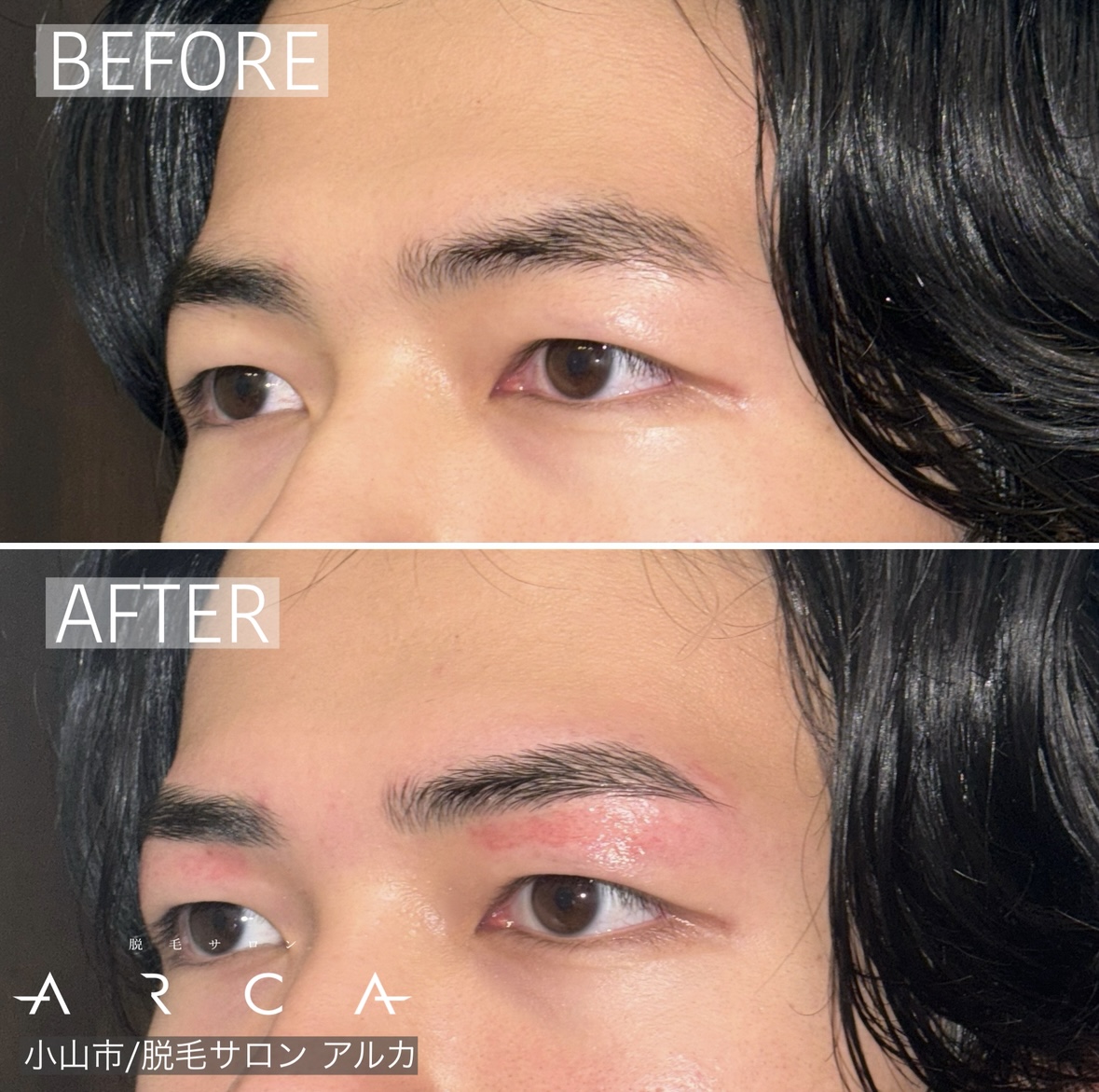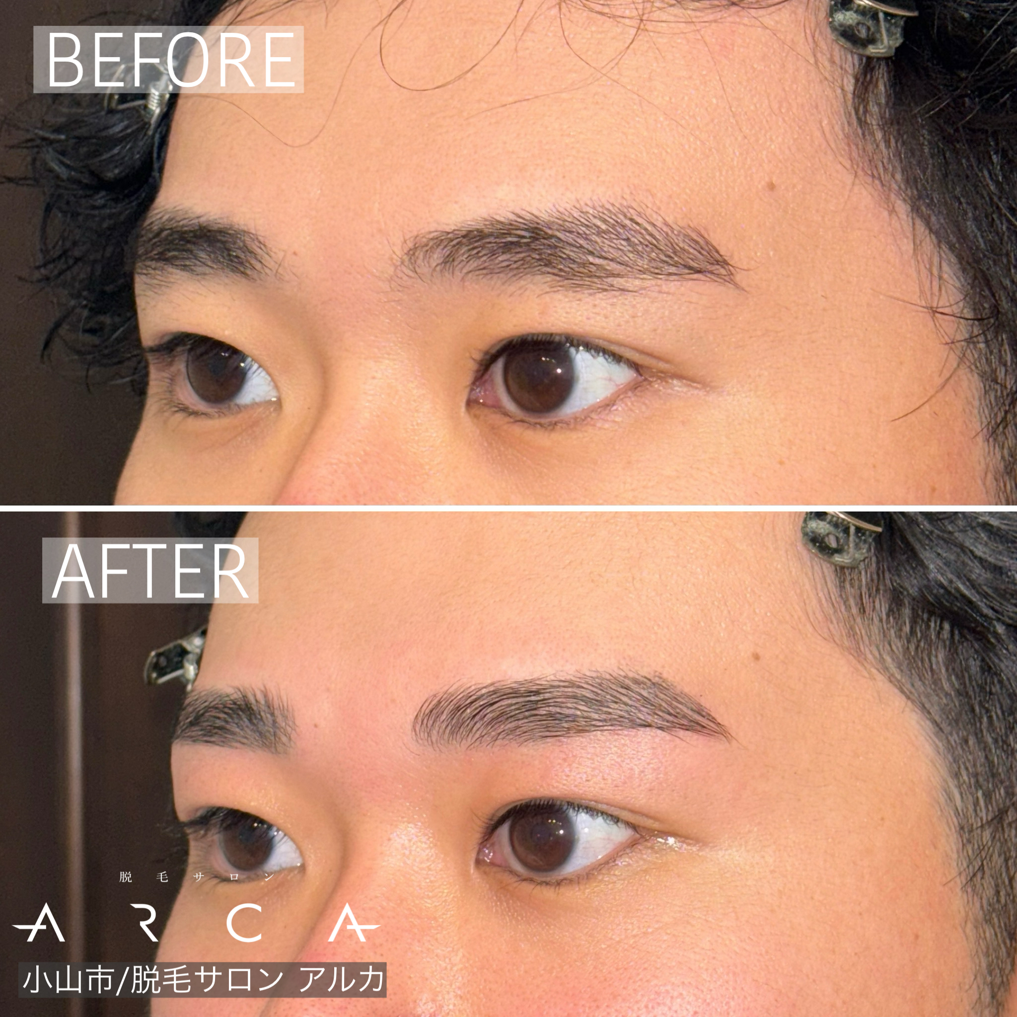 ハリウッドブロウリフトで毛流れ改善を行い、毛の濃さのばらつきがなくなり男らしいキリッとした眉毛に仕上がりました。