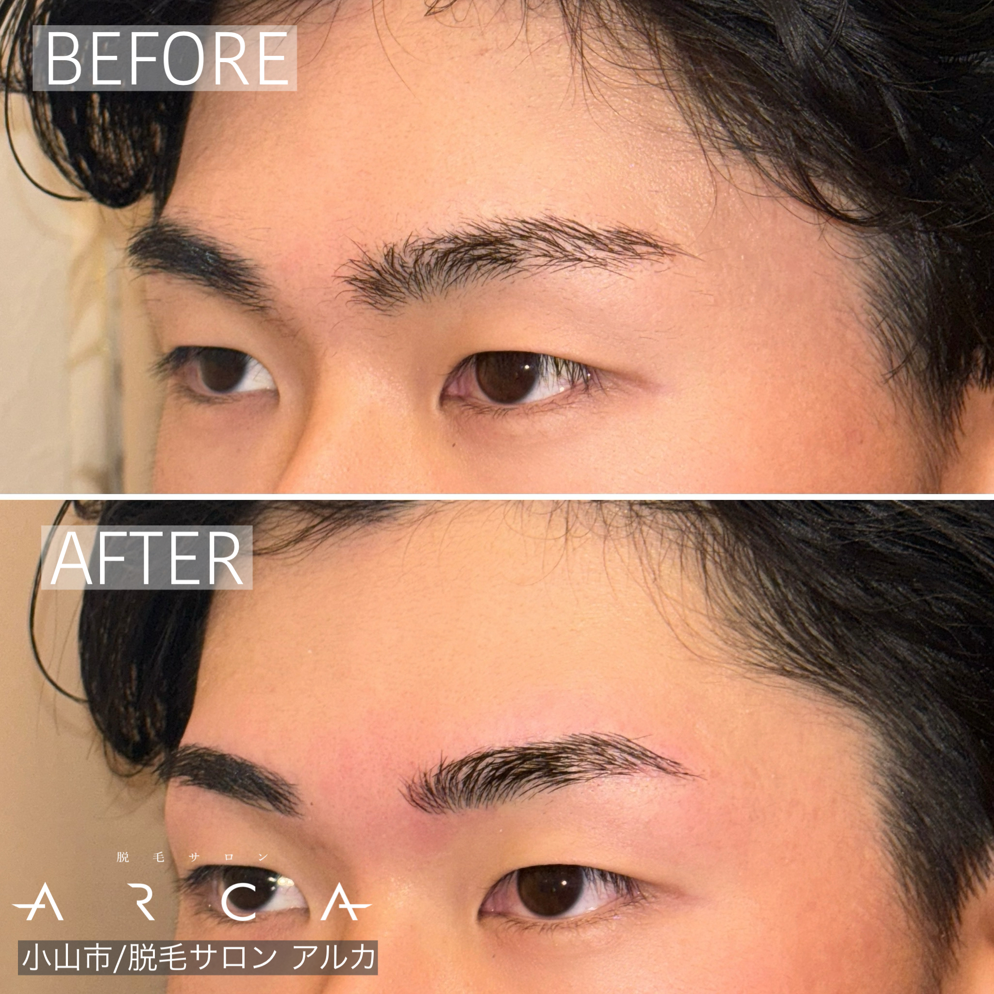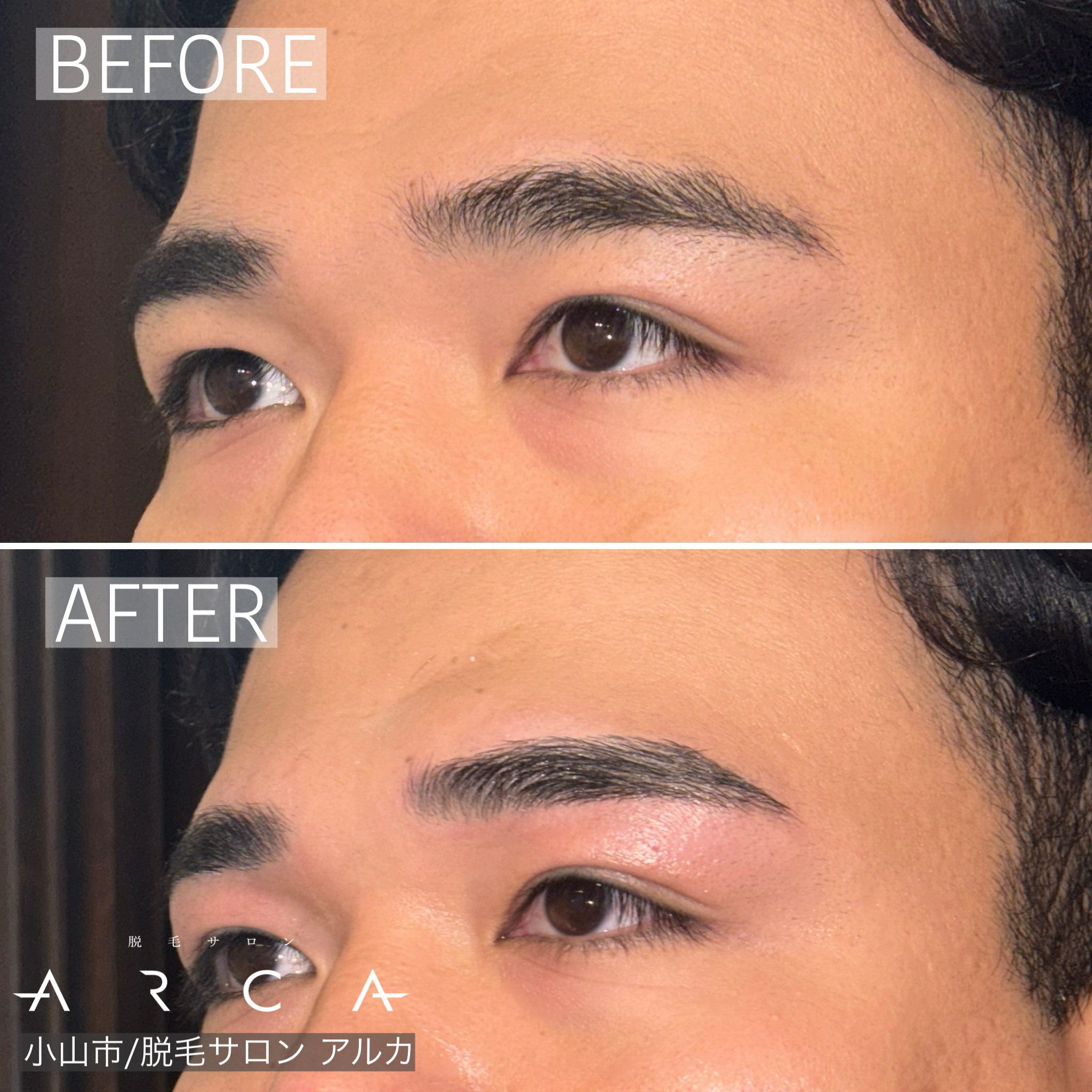 ハリウッドブロウリフトで毛流れを矯正し、横へ流れるように整えることで、ぼんやりと太く見えていた部分を改善。濃淡も均一になり、キリッとした男らしい眉毛に仕上がりました。