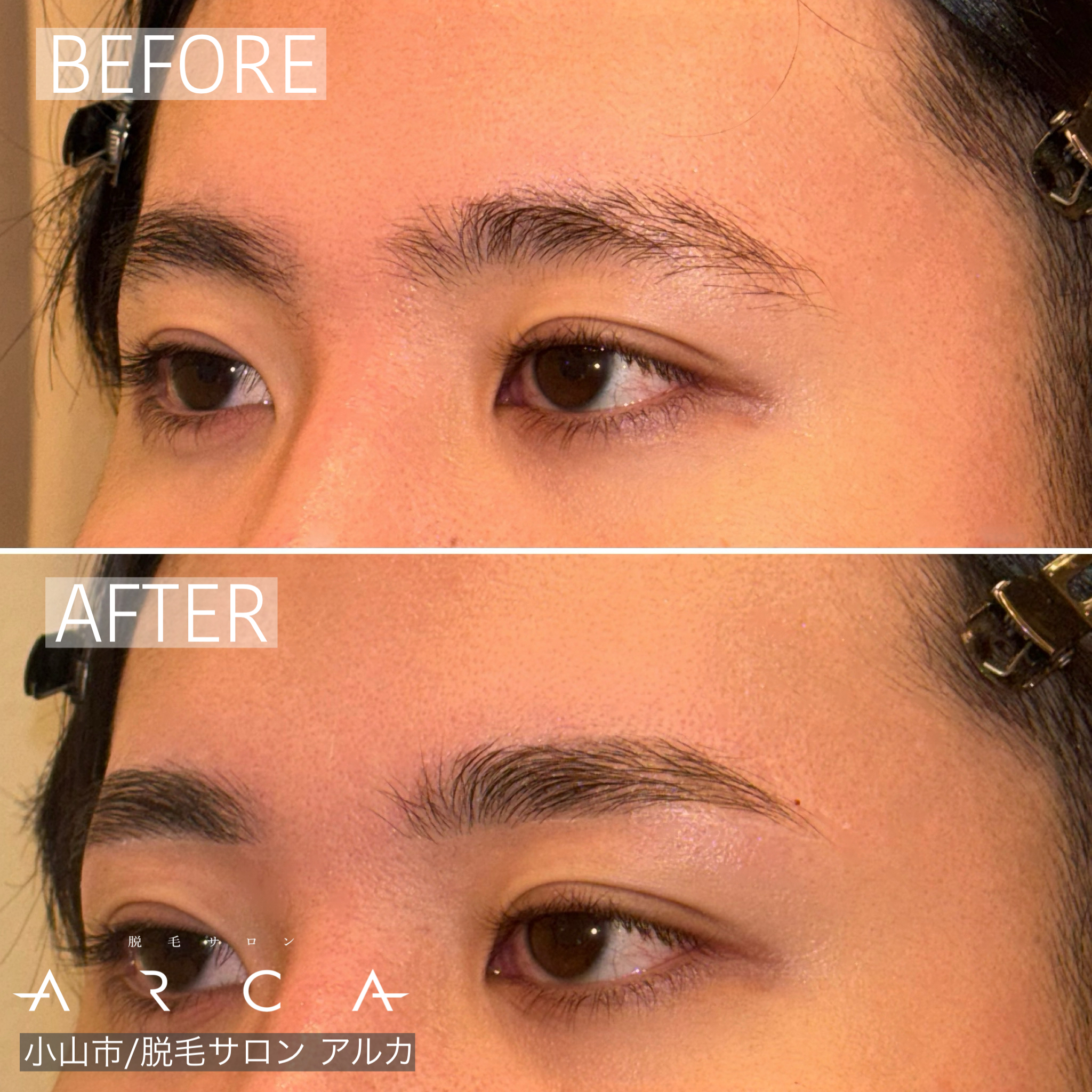 こちらのお客様は、眉毛の濃さが気になりご自身でカットして整えていたそうですが、自分に似合う眉毛にしたいと思いご来店くださいました。
