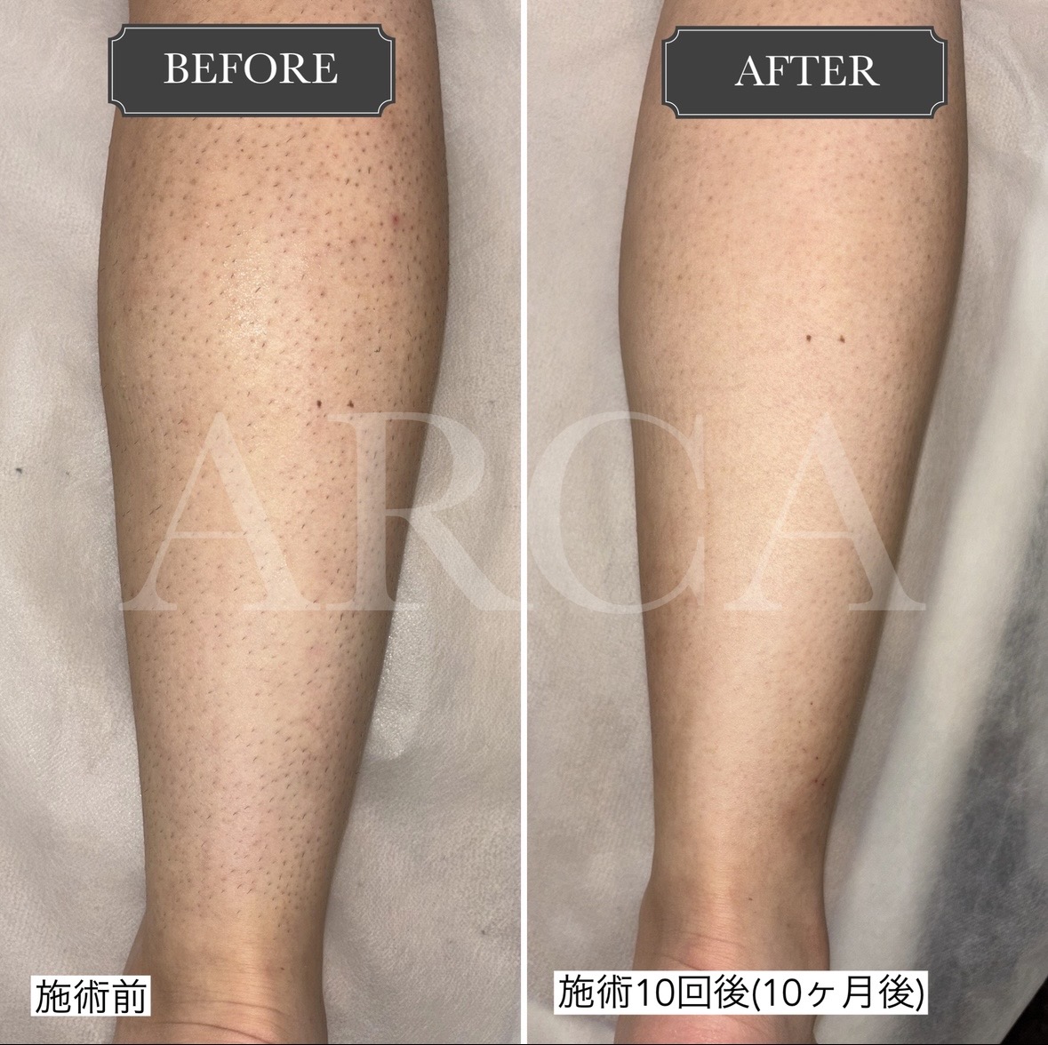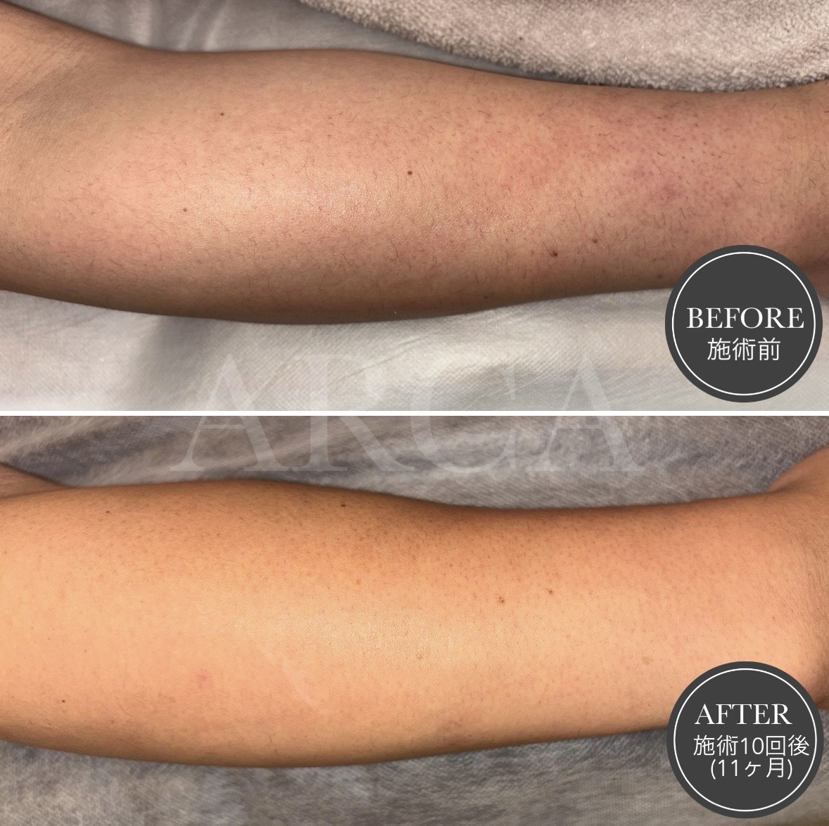 施術は1ヶ月に1回のペースで継続され、約10回の施術を重ねたことで、ムダ毛が目立たなくなり、腕全体に清潔感が出てきました。