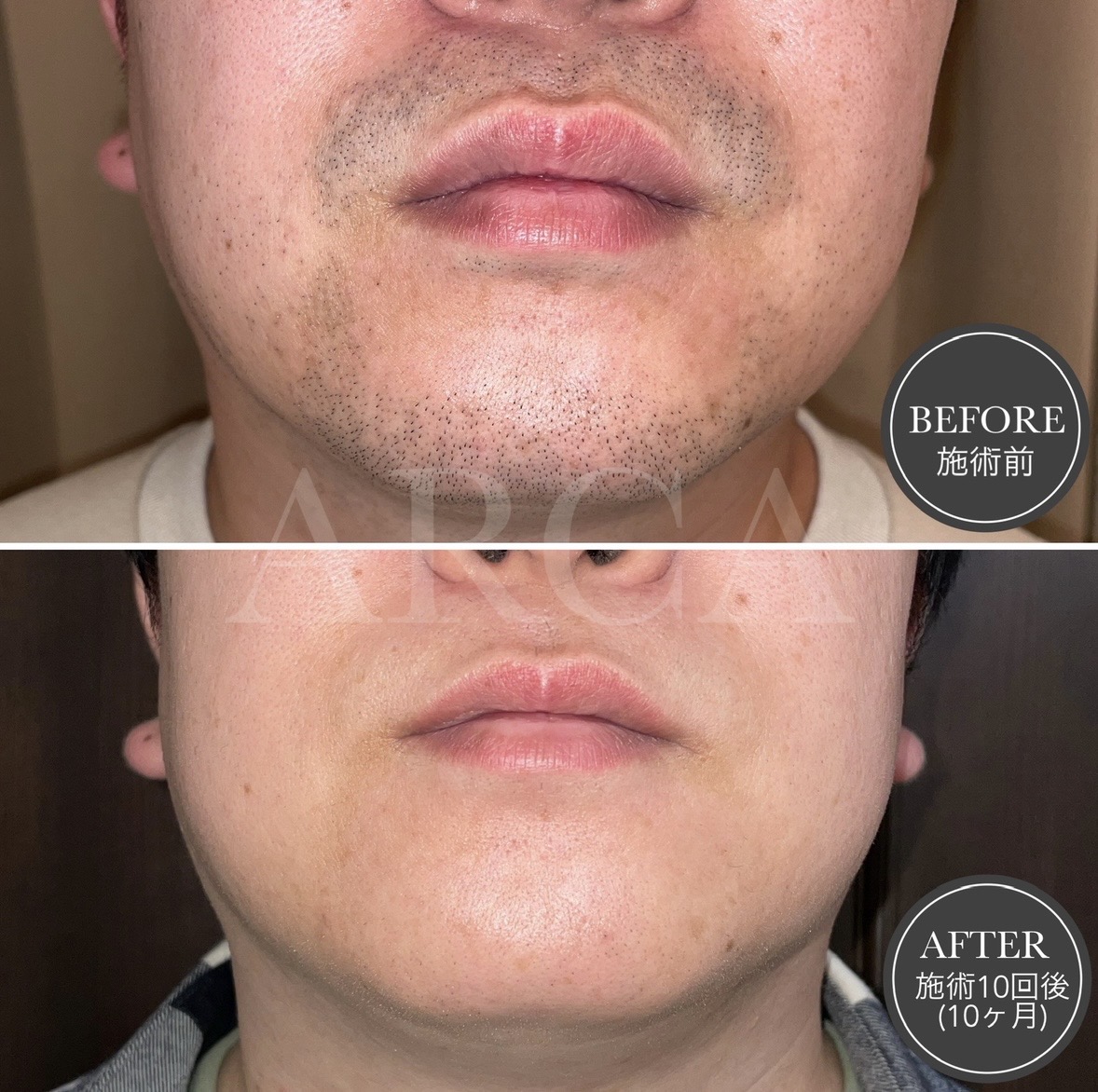 ヒゲ脱毛を月1回ペースで10回施術。徐々にヒゲが減り、艶のある綺麗な肌へと変化しました。